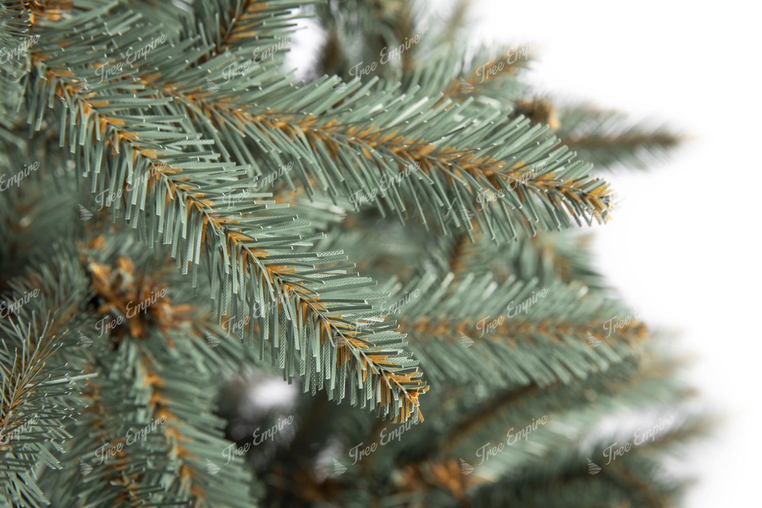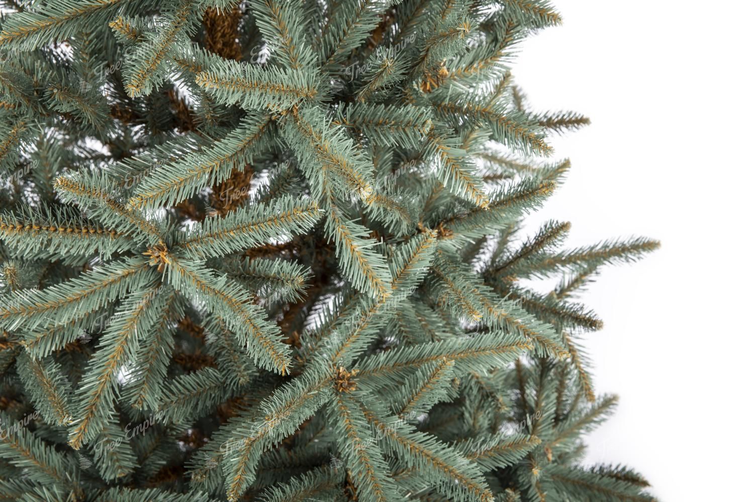 Artificial Christmas Tree Silver Spruce is distinguished by its detailed narrow PVC needles of turquoise-silver coloring and a large amount of branches. Solid metal construction and a stable tree stand are included in the package.