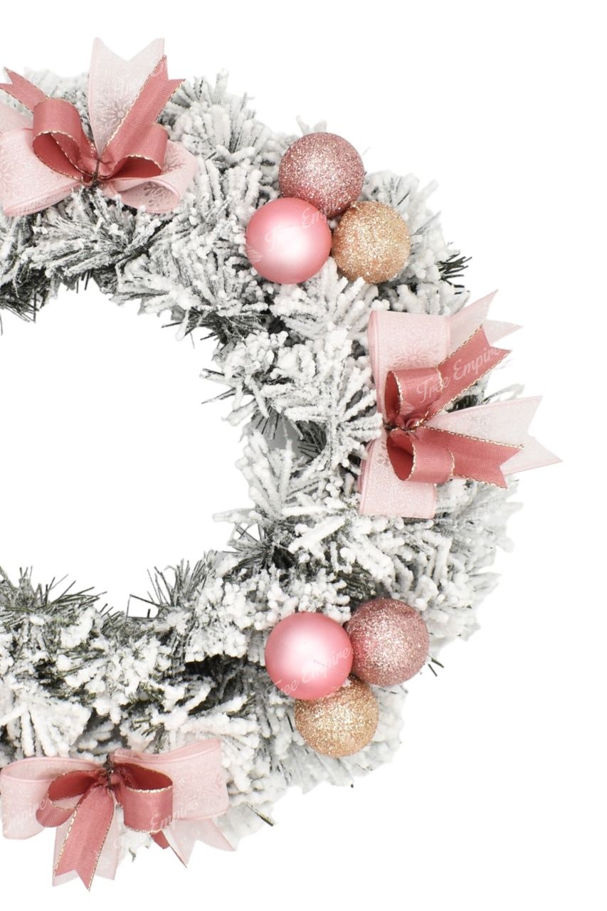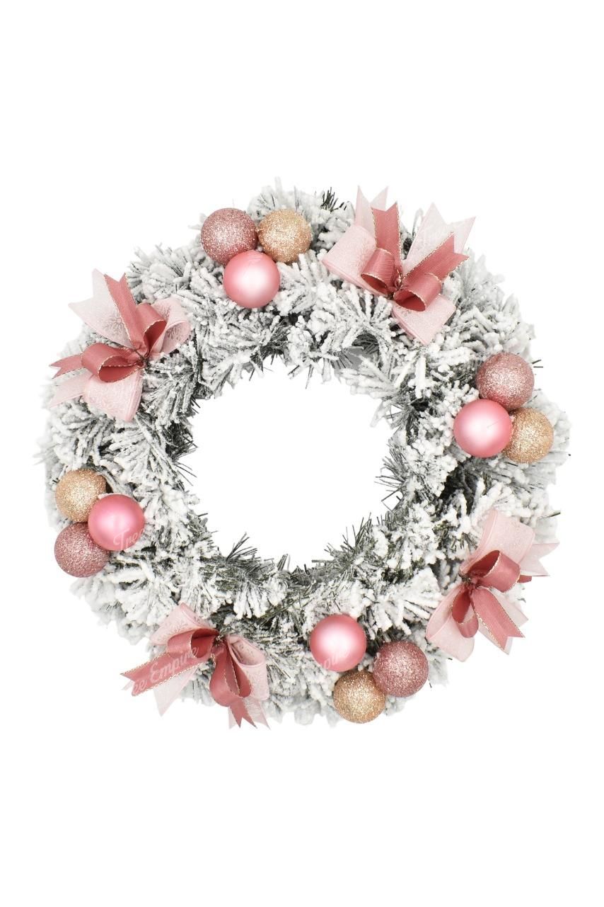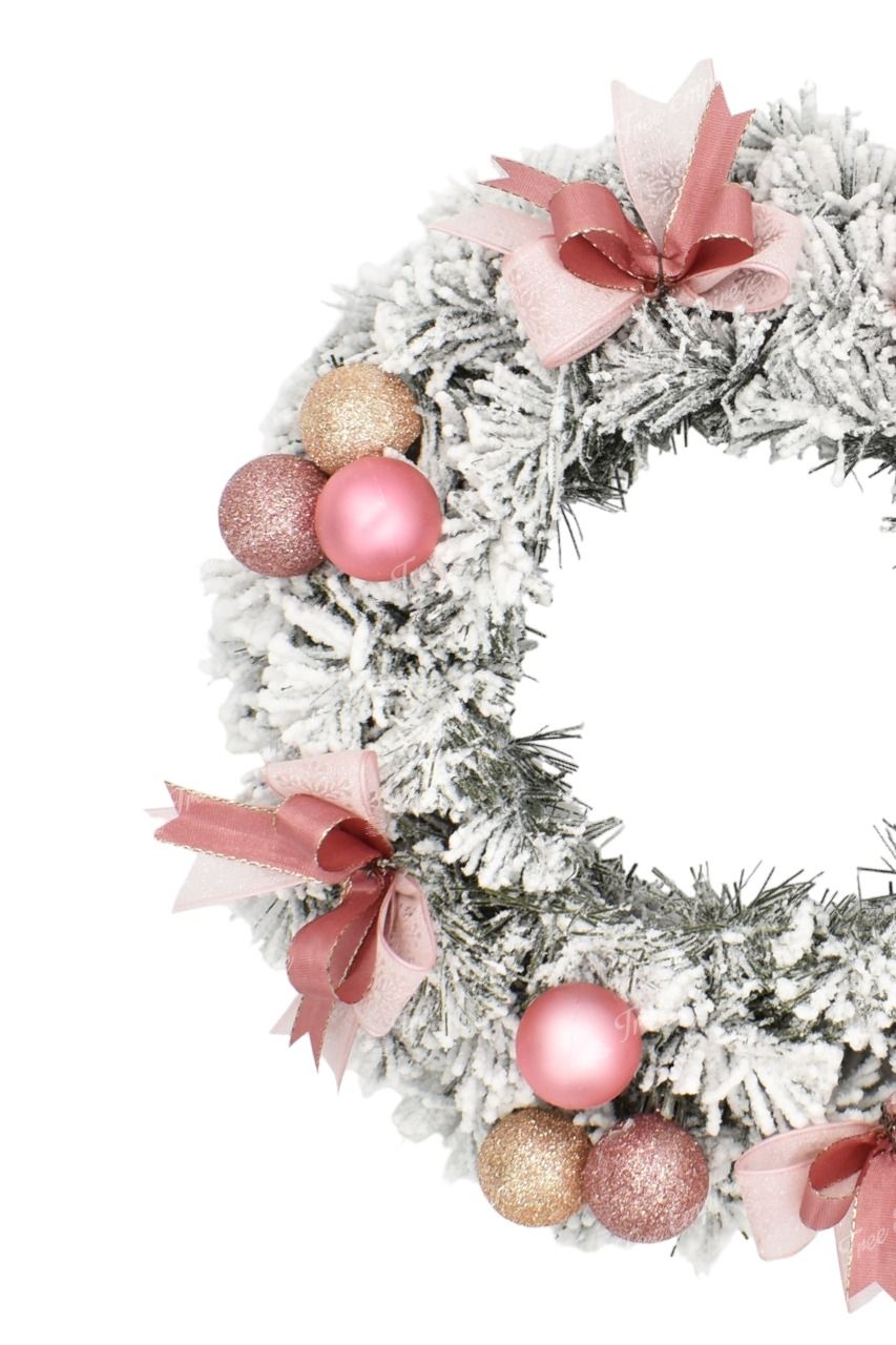 Flocked decorating advent wreath with dense ply of fake snow will bring your Christmas decoration to perfection. This Christmas wreath possesses dense, flocked quality PVC needles. Complemented by elegant decorations in light shades of pink, creamy Christmas balls and pink ribbons. You can place your advent wreath on the table or hang on the door. After careful unfolding the wreath has a diameter of 25cm.